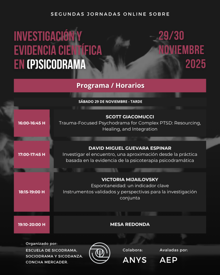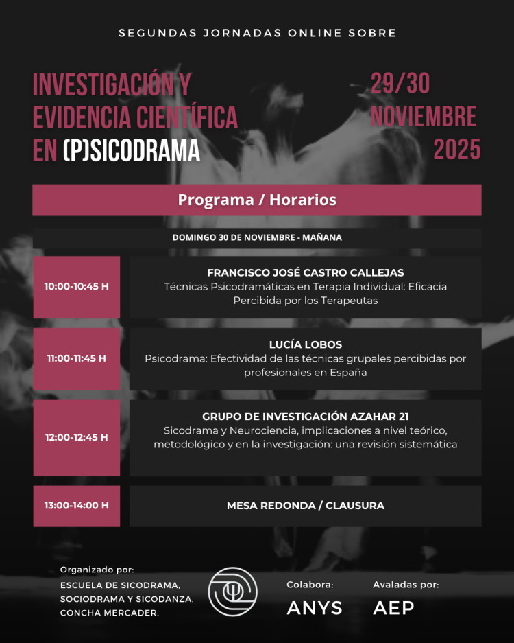 La Escuela Concha Mercader organiza por segundo año las Jornadas Online sobre Investigación y Evidencia Científica en (P)sicodrama.